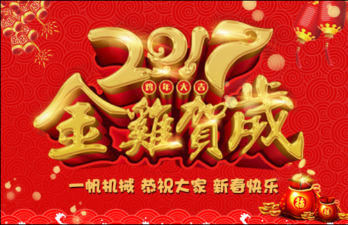 一帆機(jī)械將在春節(jié)期間放假,時(shí)間:2017年1月24日——2月3日。期間有任何問(wèn)題可在線留言,我們將在假期結(jié)束的第一時(shí)間與您聯(lián)系。謝謝!