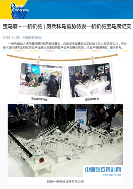 此外,本次一帆機(jī)械展會(huì)期間也受到了眾多媒體的關(guān)注,砂石骨料和破碎篩分行業(yè)的專業(yè)平臺(tái)也對一帆機(jī)械此次寶馬展上的表現(xiàn)給予稱贊,其中中國砂石協(xié)會(huì)網(wǎng)、中國砂石骨料網(wǎng)、中磚網(wǎng)等平臺(tái)也以文字和圖片形式對寶馬展上的一帆風(fēng)采進(jìn)行了跟蹤報(bào)道。