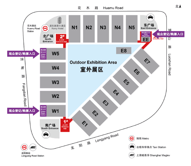 地鐵2號(hào)線:至龍陽(yáng)路站下車,4號(hào)出口可步行至新國(guó)際博覽中心1號(hào)南入口大廳及W1觀眾登記入口。