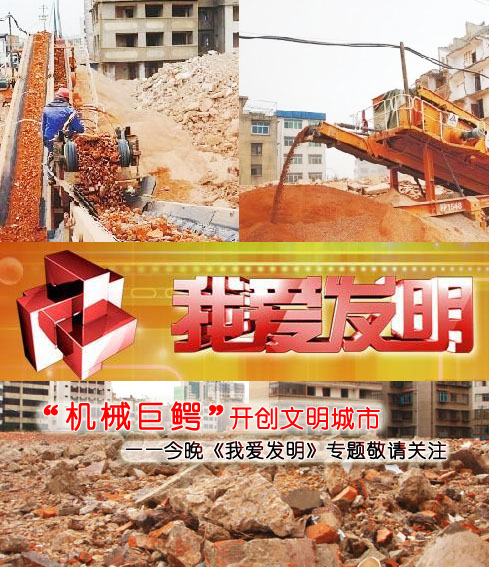 今晚18:55中央電視臺10頻道《我愛發(fā)明》欄目將為大家揭開建筑垃圾處理設備——移動破碎站如何將建筑垃圾領上資源化發(fā)展的道路,并為您一一解讀一種可以把建筑垃圾一口一口吃掉并吐出“黃金”的設備是如何幫您實現(xiàn)投資致富的,這種高效環(huán)保、節(jié)能快捷的建筑垃圾處理設備的神秘面紗在今晚即將被揭開,敬請各行各業(yè)關注。