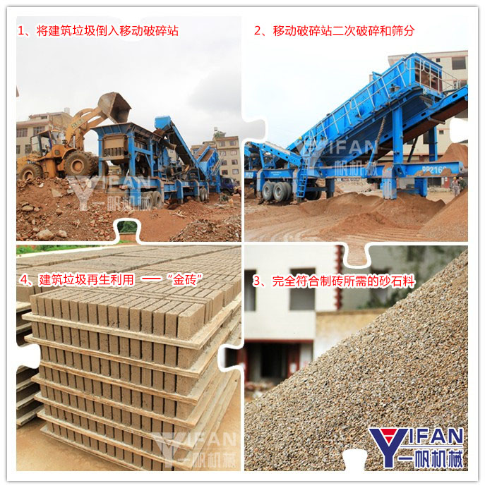 該建筑垃圾處理廠位于云南昆明,這是鄭州一帆機(jī)械公司在今年3月份簽訂的一個(gè)項(xiàng)目客戶。根據(jù)我們售后的跟蹤了解,該移動(dòng)式建筑垃圾處理設(shè)備每天可處理垃圾250噸至300噸,可日產(chǎn)免燒磚8萬(wàn)到10萬(wàn)片。自從該建筑垃圾處理廠今年三月份開始投資我公司的一條反擊式移動(dòng)破碎站和一條移動(dòng)篩分站進(jìn)行試運(yùn)營(yíng)后,公司效益得到顯著提高。